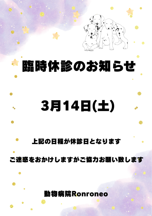 3月14日(土)が臨時休診となります。